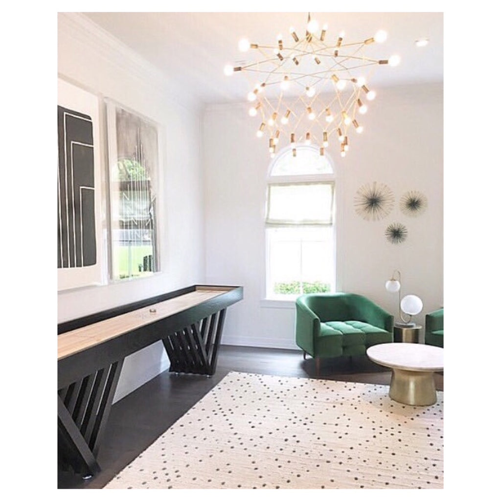DIMENSIONS: 42"d x 42"t, 12' cord drop can be trimmed to desired length or swagged