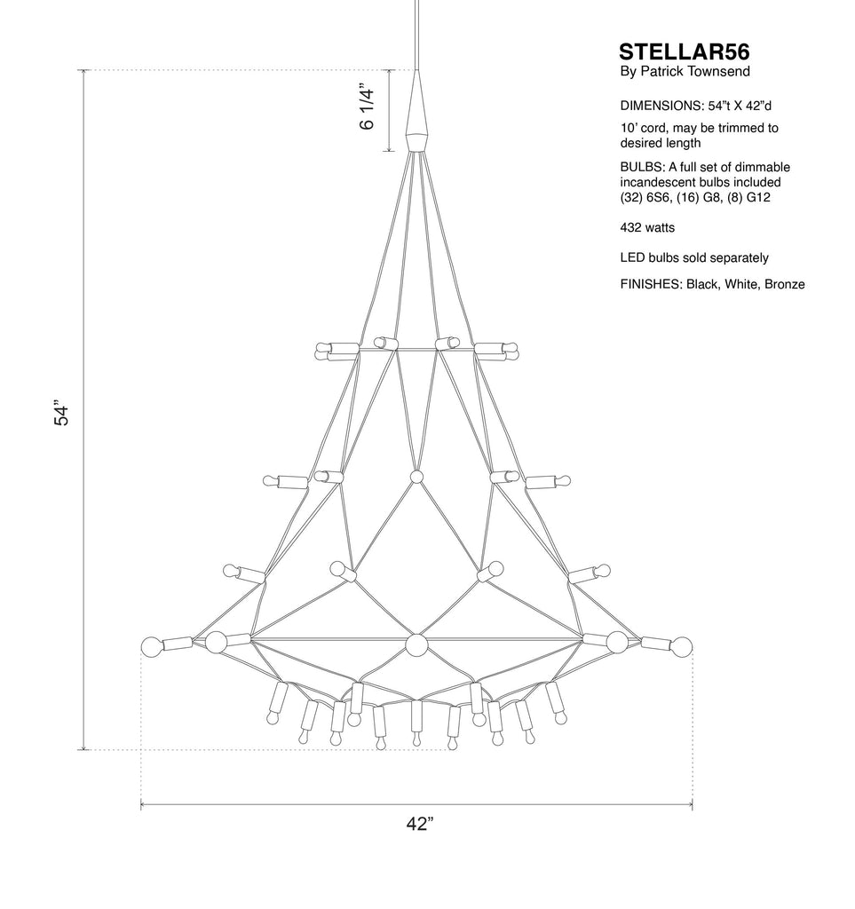Inspired by cosmic string theory, and created using tension and compression, The Stellar56 chandelier is at once timeless and modern.